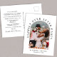 Convite moderno e elegante para casamento íntimo ou anúncio de casamento e recepção para informar familiares e amigos de que você se casou em uma cerimônia pequena, e convidá-los agora para uma recepção de casamento. A frente apresenta sua foto do dia do casamento em uma moldura arqueada e "Festa Feliz para Sempre" em tipografia elegante. Sob sua foto, você pode adicionar seus primeiros nomes e data do casamento. No verso, você pode personalizar sua mensagem em mais detalhes e adicionar detalhes da festa ou recepção e seus nomes em uma caligrafia semelhante a uma assinatura.