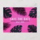 Cartão postal Festa de Folhas de Palmeira Tropical Rosa Salvar a Data. Personalize com qualquer texto.