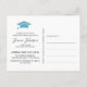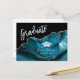 As texturas ricas de aquarela são coladas com veias de geodo dourado, em forma de cinza, contra um fundo preto nítido. Na frente da placa, um gráfico de script que diz "Formando" em texto azul suave corresponde ao azul do boné e do tronco, assim como ao nome do formando e ao ano de classe. O nome do formando e o ano de graduação são facilmente personalizados usando o modelo. Todo o texto na parte traseira do cartão-postal do convite pode ser rapidamente revisado usando o mesmo modelo antes do check-out. Um design correspondente também está disponível em uma placa simples 5 x 7 com envelope, com uma etiqueta de endereço de retorno de coordenação para a conveniência do envio.