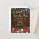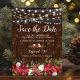 Transporte seus entes queridos para uma festa de Natal aconchegante e country direto da caixa de correio com nossos cartões de salve a data rústicos. O fundo quente de barril de madeira escura, os acentos de flores festivas e as luzes cintilantes caprichosas farão com que eles sintam o espírito natalino. Perfeito para quem deseja adicionar um charme rústico às festividades desta temporada.