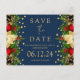 Festa de Natal Elegante / Festa de inverno / Festa de Natal / Anúncio do Partido de Natal Corporativo "Salve a Data" modelo com confete de brilho dourado e arranjo floral festivo no Marinho