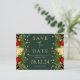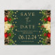 Cartão Postal De Anúncio Festa De Natal Salve A Data Dourada Floral Verde