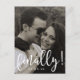 Um cartão de "salve a data" divertido e moderno se você é um casal que está demorando para se comprometer ou marcar a data do casamento! Este design apresenta uma versão com sangria total da sua foto favorita dos dois, sobreposta com a palavra "finalmente!" em fonte com estilo de letra manuscrita em branco, e a data do seu casamento em fonte moderna. O verso tem a frase "nós vamos nos casar!" em fonte preta com letra manuscrita e fornece detalhes do seu grande dia, que você pode personalizar e customizar completamente.
