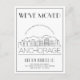Um cartão-postal único e moderno estilo deco, para a bela cidade de Anchorage, no Alasca. Esta placa apresenta uma ilustração estilizada do horizonte único da cidade com seu nome embaixo. Esta é seguida pelas informações de endereço em um estilo aberto correspondente. Todos os elementos individuais da placa estão desbloqueados, portanto, sintam-se livres para alterar ou adicionar os detalhes necessários usando a função de personalização.