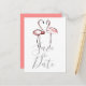 Cartão Postal De Anúncio Flamingos Rosa Bege Marble Salve o Dia
