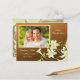 Uma forma económica e bonita de anunciar a data do seu casamento e pedir aos seus convidados para Guardar a Data. Uma mistura de tons de cobre são combinados com magníficas flores de trombeta e folhagens que descem em cascata pela parte inferior e se envolvem no verso deste cartão-postal.