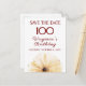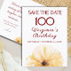 Celebre um século incrível com este elegante cartão Save the Date floral. Com uma flor de aquarela amarela suave e um layout moderno e refinado, é perfeito para festas de jardim ou reuniões sofisticadas de marco. Totalmente personalizável com seus detalhes. Aproveite!