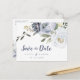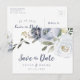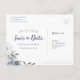 Cartão Postal De Anúncio Floral azul empoeirado botânico salve a data