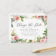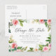 Precisa alterar a data do seu casamento? Nossos elegantes cartões-postais de adiamento de casamento "altere a data" com flores são perfeitos para ajudar a notificar os convidados da nova data do seu casamento. O cartão-postal "altere a data" apresenta "Altere a Data" em uma fonte de caligrafia moderna com uma borda de flores em aquarela rosa, bege, branca e pêssego com folhas verdes vibrantes. Personalize o cartão-postal adicionando seus nomes, endereço de devolução, detalhes do casamento, site do casamento, etc.