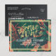 Cartão Postal De Anúncio Floral Tropical & Quadro Dourado Casamento Salvar