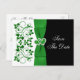 Este romântico casamento floral preto e branco e esmeraldo verde salve a data poste que tem uma fita e arco IMPRESSOS com um par de joias de diamante IMPRESSAS e a brilha FAUX juntou corações que combinam com a Rua. O convite de casamento do Dia do Patrick mostrado abaixo. ****POR FAVOR, OBSERVE que não há gravações neste cartão ou imagens levantadas. TAMBÉM, o Zazzle NÃO editará nada para digitar, alinhamento ou espaçamento, portanto, certifique-se de que seu texto seja exatamente como você deseja. Não verei o seu cartão, por isso, se precisar de ajuda para personalizar o meu design, por favor, envie-me um e-mail ANTES de pedir. Tudo está impresso em forma plana. O texto é totalmente personalizável. Se necessitar de itens correspondentes, envie um e-mail para niteowlstudio@gmail.com.