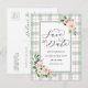 Este cartão postal de salvar a data de casamento apresenta flores pintadas à aguarela em tons de rosa, branco e folhagem verde sobre um fundo xadrez pastel em aguarela. Para uma personalização mais avançada deste design, clique no botão "Personalizar". Itens correspondentes também estão disponíveis.