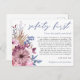 Quando as circunstâncias infelizmente significam que você precisa adiar o seu casamento, este cartão-postal conveniente permitirá que você informe seus convidados. Segurança em Primeiro Lugar está escrito em uma elegante letra cursiva em azul empoeirado no topo e o resto do texto na frente e no verso pode ser facilmente personalizado. Flores modernas rosa e lilás e folhagens azuis estão à esquerda e um motivo floral coordenado também está no verso.