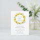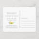 Flórida russa elegante de aquarela, salve a data dos cartões postais com a inscrição "salve a data" em dentro de cor amarela dos girassóis, folhagem verde vibrante e minúsculos botões azuis de flores silvestres marinhos. Coordena-se com a nossa coleção de artigos de papelaria Flowerfields para casamentos de chic do país. Cartões postais inversos para mostrar os detalhes adicionais da data, incluindo o site do casamento, com seu endereço de retorno e espaço para o endereçamento do destinatário.