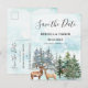 Salve o cartão-postal de data com pinheiros de floresta de cor aquática. Localize itens correspondentes em nosso compro ou entre em contato conosco.