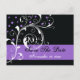 Casamento floral de folha de rolagem negra roxo roxo Elegante Salve o cartão-postal Data, com folhas brancas de rolagem, espirais e enrolados e pontos roxos sobre fundo preto. Há uma banda roxa com o seu texto para baixo. Design clássico, na moda e chic perfeito para um casamento no inverno.