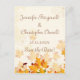 Um design elegante e luxuoso para o seu casamento de outono, apresentando uma dispersão de folhas de outono em amarelo dourado, laranja e vermelho. Recortes dourados bordam a área para os detalhes do seu dia especial. Isso se coordena com nossa Coleção de Casamento Folhas de Outono Douradas. O texto e as fontes são totalmente personalizáveis para atender ao seu próprio estilo e necessidades. Se precisar de ajuda com sua personalização ou precisar disso em produtos já disponíveis, entre em contato conosco através da loja WeddingBazaar e teremos prazer em ajudar. Se desejar isso em outra combinação de cores, sinta-se à vontade para entrar em contato conosco.