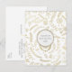 Cartão Postal Folhas Florais Douradas Casamento Rústico Salvar a Data.