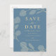 Cartão Postal De Anúncio Folhas Simples Elegantes Modernas Casamento Azul