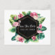 Folhas Tropicais Hibisco Flamingos Salve a Data Cartão Postal. Personalize com qualquer texto.