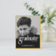 Este moderno e ousado cartão-postal de anúncio de formatura de 2025 apresenta uma foto do graduado da faculdade ou do ensino médio. Uma tipografia branca e moderna forma a palavra "graduado" sobreposta à fotografia. Um fundo metálico dourado elegante emoldura a foto e os elementos do texto. Você pode ajustar a redação no verso do cartão para torná-lo um simples anúncio de formatura ou um convite para uma festa de formatura. Por favor, note que adicionamos um modelo de foto em preto e branco ao design. Se você tiver uma foto colorida, mas quiser manter a aparência, você pode adicionar um filtro preto e branco clicando em "clique para personalizar ainda mais".