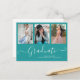 Cartão Postal De Anúncio Formatura Script 3 Colagem de Fotos Azul Graduação