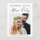 Convite de anúncio de casamento ou elopamento elegante ou cartão postal de recepção. A frente apresenta a foto do seu casamento e "Festa Feliz para Sempre" em uma mistura de tipografia simples e uma escrita moderna. Abaixo da sua foto, adicione seus primeiros nomes e data do casamento. No verso, personalize sua mensagem em mais detalhes e adicione detalhes da festa ou recepção e seus nomes em uma escrita semelhante a uma assinatura.