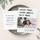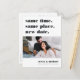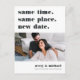 Precisa mudar sua data de casamento? Notificar os hóspedes com este cartão postal moderno e leve, com as palavras "mesmo tempo, mesmo lugar, nova data" em letras negras suaves e ricas. Personalize com uma foto e adicione seus nomes na parte inferior. Personalize as costas com detalhes adicionais, incluindo sua nova data e uma mensagem pessoal.