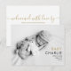Cartão de anúncio de nascimento de bebê moderno para apresentar seu lindo bebê recém-nascido. A frente apresenta uma foto do seu bebê e tipografia elegante. O verso tem uma mensagem de boas-vindas ao bebê e agradecimento que você pode personalizar, incluindo as estatísticas de nascimento do seu pequeno. Uma maneira encantadora de apresentar sua nova chegada! Concebido por Thisisnotme