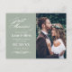 Cartão Postal De Anúncio Foto de Casamento Elegante Verde do recem casados