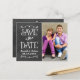 Cartão Postal De Anúncio Foto de Casamento Rustic Chalkboard Salvar Data