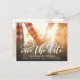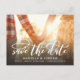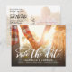 Este na moda para salvar a data do anúncio do cartão postal mostra sua foto ao emparelhá-la com um roteiro de caligrafia moderna, caprichosa e romântica, que diz "Salve a data". A parte traseira apresenta uma foto adicional com uma transparência branca sobre ela. Basta adicionar suas fotos e os detalhes do seu grande dia usando o modelo fornecido.