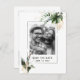 Este cartão postal de convite de casamento com foto de salva data apresenta folhagem tropical verde aquarela, folha de monstera, folhas de palmeira, folhas de banana com acentos de folhas de ouro falso. É perfeito para um casamento na praia ou destino. >>> Confira a coleção completa >>> https://www.zazzle.com/collections/tropical_foliage_green_collection-119021829937676776