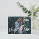 Mude a data! Anuncie para sua família e amigos o adiamento do seu casamento com este cartão postal de mudança de data. Ele apresenta uma sobreposição de letras à mão branca. Personalize adicionando suas fotos, nomes, endereço e outros detalhes. Este cartão de mudança de data também será perfeito como um anúncio de casamento íntimo.