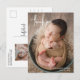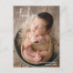 Cartão postal simples de anúncio de nascimento com "obrigado" num roteiro moderno, juntamente com o nome e a data de nascimento do bebê sobre a sua foto favorita. O verso tem uma segunda foto junto com sua mensagem pessoal. Este anúncio de nascimento elegante é uma forma excelente de anunciar o nascimento do seu novo bebê ou menina.