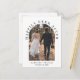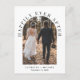Anúncio de casamento discreto e elegante ou cartão postal de convite para recepção de casamento para informar familiares e amigos de que se casaram numa cerimônia pequena, e para os convidar agora para uma recepção de casamento. A frente apresenta a foto do dia do casamento num quadro arqueado e "Felizes para Sempre" em tipografia elegante. Sob a foto, podem ser adicionados os primeiros nomes e a data do casamento. No verso, pode personalizar a mensagem em mais detalhes e adicionar os detalhes da festa ou recepção e os nomes numa caligrafia semelhante a uma assinatura.