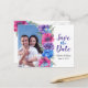 Cartão postal de anúncio de casamento com foto floral de anemone forget me not. Este modelo de cartão postal de anúncio de casamento com foto de anemone em aquarela é uma boa escolha para um casamento de verão ou primavera. Este cartão postal de anúncio de casamento com flores de anemone coloridas apresenta lindas flores de anemone rosa, roxa e azul em aquarela combinadas com flores azuis de forget-me-not e folhas verdes de samambaia. Este cartão postal de anúncio de casamento com foto de anemone tem um visual ousado e vibrante de buquê floral colorido.