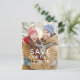 Esta foto salva o cartão-postal da data apresenta uma combinação de estilos tipográficos que lhe dão uma aparência brilhante e quente com um charme próprio. Use as ferramentas de design para personalizá-lo e torná-lo exclusivamente seu com sua foto favorita! Quase todo texto em ambos os lados pode ser alterado para se adequar ao seu próprio estilo. A parte traseira da placa tem uma base branca. Oferecemos também este cartão postal com a aparência de madeira no verso e com espaço para seus detalhes na frente, então, por favor, navegue em nosso compro por esses e outros designs!