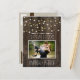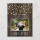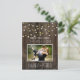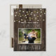Foto: Casamento de madeira de celeiro Russo Salve a data Cartões- mostra uma madeira de celeiro impressa ou madeira recuperada com estrelas douradas e luzes brilhantes de cordas no topo. Você pode mudar a foto do casal de demonstração para uma de suas.