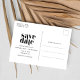 Salve os cartões postais de data em um design simples, perfeito para pedir aos amigos e à família que reservem sua data de casamento. Personalize o lado frontal do cartão postal com sua foto e adicione os detalhes do seu casamento no verso.