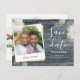 Adicione sua própria foto de noivado na frente e no verso destes cartões-postais rústicos de "save the date" de casamento. O design original e único de aquarela criado por Raphaela Wilson retrata um fundo country de madeira cinza vintage decorado com folhagens de eucalipto e rosas brancas elegantes acentuadas com dourado. Se por acaso você gosta mais de prata do que de ouro, a flexibilidade criativa destes convites de "save the date" de casamento permite que você selecione esta opção também. Personalize ainda mais o design simples para revelar camadas adicionais de folhagens artísticas e selecione o script de caligrafia e outros campos de texto de fonte moderna para alterar as informações de acordo com suas necessidades. No verso, a rosa estilizada com tipografia que diz "Save the Date" também pode ser alterada para qualquer texto! Se você está procurando criar seus próprios cartões-postais de "save the date" com um design floral boho, estes convites de "save the date" de eucalipto podem se encaixar perfeitamente nos planos para qualquer casamento de primavera, verão, inverno ou outono. Categoria: convites de "save the date" de modelo moderno DIY; convites de "save the date" de casamento elegantes; e convites de "save the date