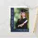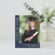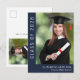 Cartão postal de anúncio de formatura azul escuro simples e elegante com tipografia branca moderna. A frente apresenta a foto do graduado, o ano da turma e o nome e a escola dele ou dela. No verso, adicione uma foto adicional, uma mensagem de congratulações e uma mensagem mais pessoal, como os planos futuros do graduado.