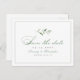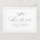 Este elegante cartão de data apresenta um roteiro clássico e um simples design verde-aquarela cercado por um quadro fino, excelente para casamento clássico, casamento vintage, casamento da primavera ou casamento de verão. Ver todas as peças correspondentes na coleção
