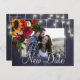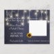 Girassóis amarelos dourados, rosas burgundy vermelhas, cordas de luzes cintilantes e tipografia branca em quadro-negro elegante azul-marinho meia-noite foto data nova casamento adiado cartão postal de anúncio. +++++++++ Fácil de personalizar com seus nomes e texto! ++++++++++ Adequado para casamentos florais de inverno, Natal, final de verão ou outono / jardim de quintal rústico country ou fazenda temática.