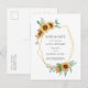 Cartão Postal De Anúncio Girassol Floral Efeito Dourado Geométrico Rústico
