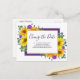 Este lindo design moderno e rústico apresenta buquês exuberantes de girassóis, rosas roxas reais e folhagens, incluindo folhas de eucalipto e samambaias na frente. Atrás dos buquês há um retângulo roxo violeta escuro, e na frente há uma área branca com bordas douradas com o texto personalizável em roxo profundo em letra cursiva elegante e tipografia sem serifa. A parte de trás do cartão apresenta sobreposições florais transparentes nos cantos e mais texto personalizável, incluindo um endereço de devolução para simplificar o seu processo de envio. Você pode personalizar este item para o seu evento especial alterando o texto no modelo do produto.