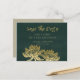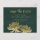 CARTÃO POSTAL DE ANÚNCIO GLAMOUROSO LÓTUS FLORAL VERDE OURO SALVE A DATA