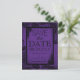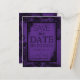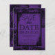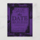 Renda preta sobre fundo grunge roxo cartão postal de salva data gótico.