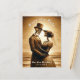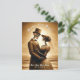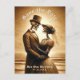This gothic vintage wedding save the date postcard features a sepia skeleton couple. The back of the card has another image of the couple on the beach which can be kept or customized with your own photo. Personalize with your wedding details. Images generated with AI.