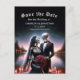 Cartão Postal De Anúncio Gothic Skeleton Couple Navy Save the Date